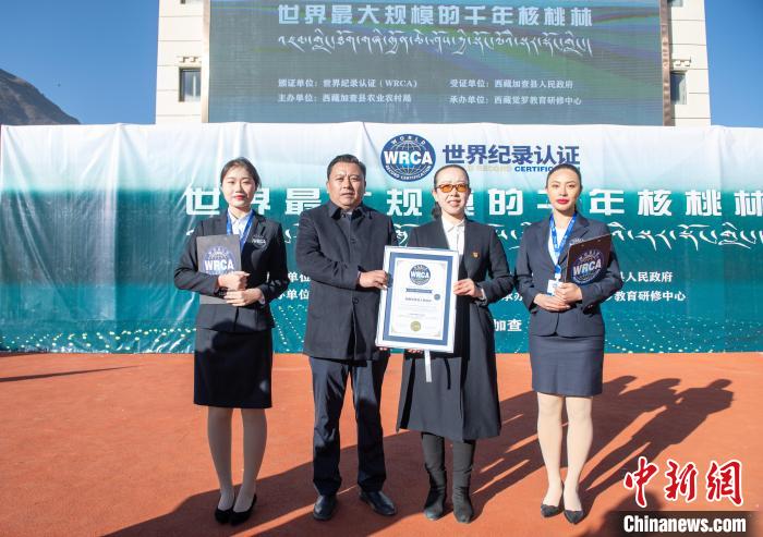 15日,經(jīng)世界紀(jì)錄認(rèn)證(WRCA)官方人員現(xiàn)場(chǎng)審核,西藏山南市加查縣被認(rèn)證為“世界最大規(guī)模的千年核桃林”。