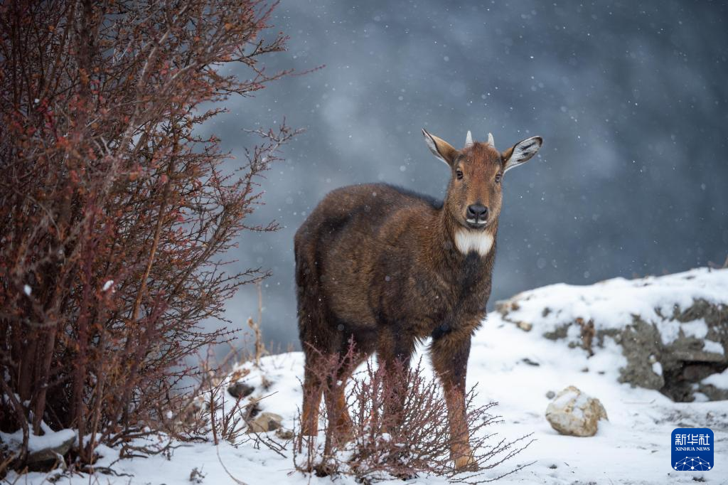 1月17日拍攝于西藏山南市洛扎縣的喜馬拉雅斑羚。新華社記者 旦增尼瑪曲珠 攝