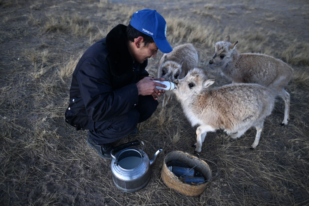 寒冬時節(jié),在青海省三江源國家公園管理局長江源園區(qū)可可西里管理處索南達杰保護站,3只被救助的藏羚羊幼仔在巡山隊員的呵護下,目前健康狀況良好,不久將接受野化訓(xùn)練。