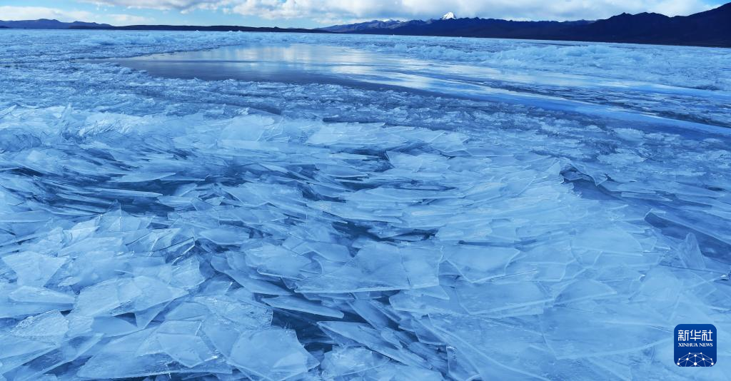 冬日里,瑪旁雍錯部分湖面已經(jīng)結(jié)冰,形狀各異的浮冰漂在水面上,在深綠色湖水的映襯下,構(gòu)成了一道獨特的風(fēng)景線。