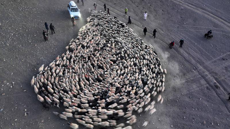 “每年趕羊前10天,村里家家戶戶都會開始準(zhǔn)備爐灰,爐灰是用來撒在冰面上防止羊群摔倒。”旺堆說。雖然提前撒好了防止羊群打滑的爐灰,但還是會有頻繁打滑摔跟頭的羊,此時(shí)牧羊人就會扶它們起來,或背或抱,把它們送到目的地。