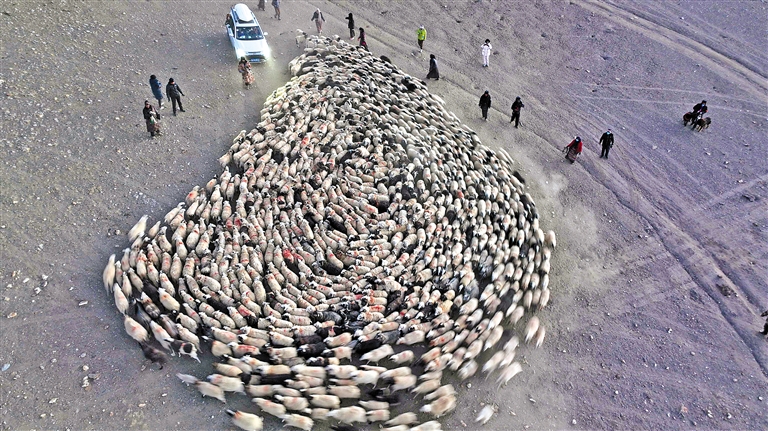 西藏山南市浪卡子縣打隆鎮(zhèn)推瓦村牧羊轉(zhuǎn)場:藍(lán)色冰湖上的生命律動(dòng)