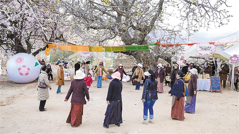 每年4月初,拉薩北郊山上的桃花就會燦爛盛開,是市民游客最愛的賞花打卡地之一。4月12日,2024年娘熱上春山徒步主題攝影周在娘熱街道嘎如古村舉辦。在明媚的春光里,內(nèi)容豐富、形式多樣的賞花、品美食小吃、逛花間集市系列互動活動,為廣大游客和市民奉上了一場春日的盛宴。