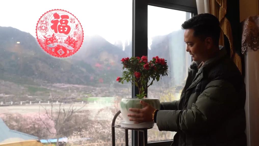下午4點(diǎn),林芝市波密縣傾多鎮(zhèn)古通村,遠(yuǎn)來(lái)的游客入住到村民洛松頓珠開(kāi)辦的民宿。寬敞的客廳里,藏式家具整齊大氣,窗外古老的桃花樹(shù)隨風(fēng)散落著陣陣花雨。