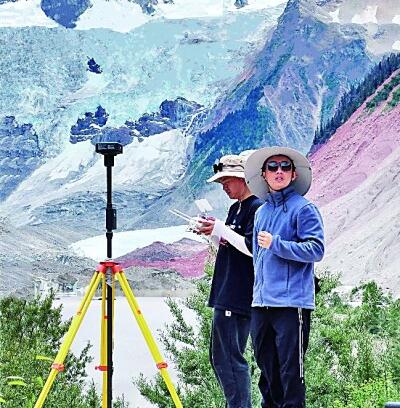 成都理工大學(xué)科研人員使用無人機(jī)對(duì)冰川進(jìn)行熱紅外和正射影像作業(yè)。葉川攝/光明圖片