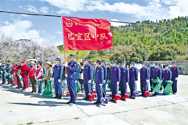 為高質(zhì)量推動(dòng)生態(tài)環(huán)境保護(hù)工作各項(xiàng)整改任務(wù)落實(shí)落細(xì),近日,西藏林芝市森林消防支隊(duì)巴宜區(qū)中隊(duì)與轄區(qū)各單位攜手合作,開(kāi)展“凈美巴宜”環(huán)境衛(wèi)生專(zhuān)項(xiàng)整治行動(dòng)。