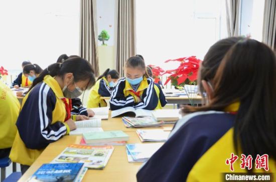 圖為化隆縣第一小學(xué)的學(xué)生們?cè)陂営[室讀書?!◆?shù)り?攝