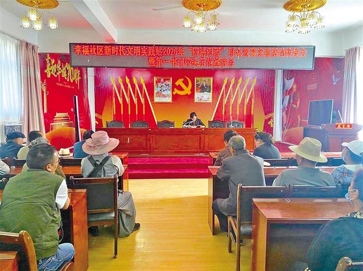 近日,拉薩市功德林街道幸福社區(qū)組織社區(qū)居民代表、組長、聯戶代表等共100余人,開展了新時代文明實踐站2020年“四講四愛”群眾教育實踐活動轉段會暨第一書記帶頭示范宣講會。