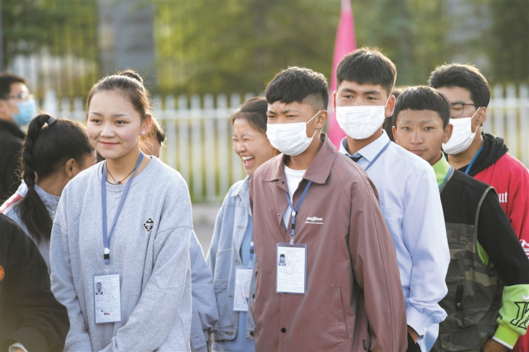 當(dāng)日上午8時(shí),考生統(tǒng)一乘坐拉薩市公交公司高考愛(ài)心接送車來(lái)到拉薩中學(xué)考點(diǎn)。在疫情防控常態(tài)化背景下,考生手拿準(zhǔn)考證、身份證,戴著口罩,排隊(duì)測(cè)量體溫之后,有序進(jìn)入考場(chǎng)。為應(yīng)對(duì)突發(fā)狀況,考點(diǎn)外設(shè)置了隔離區(qū),并有醫(yī)療人員駐守。參加高考的考生之間也互相加油打氣,考生拉巴頓珠說(shuō):“祝愿大家都能好好發(fā)揮,考上自己心儀的學(xué)校?!?/p>