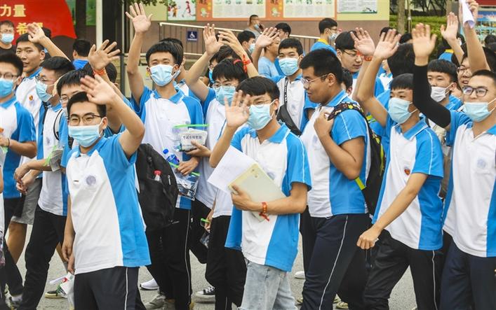 8日,河北文安縣第一中學(xué)考點(diǎn)的高考生走出考場(chǎng)。新華社