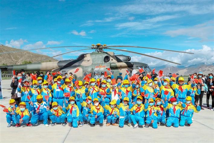 飛行訓練結束后,駐地小學學生為飛行員獻上鮮花?!袄蠋?,飛行員們可真酷,我也想成為這么酷的人?!笨粗w行員們,學生小卓瑪拉著老師偷偷說道。