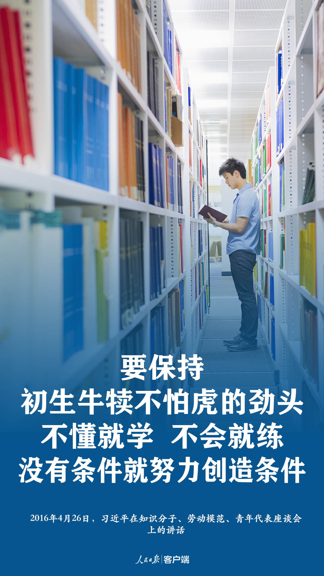 2016年4月,習近平來到中國科技大學圖書館自習室與同學們愉快交談,并勉勵大家“在學校要心無旁騖,學成文武藝,報效祖國和人民,報效中華民族。同學們好好學吧!”