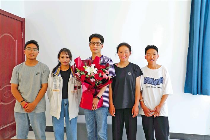 圖為西藏民族大學的學生為老師送上鮮花,表達祝福和謝意。記者 王莉 攝