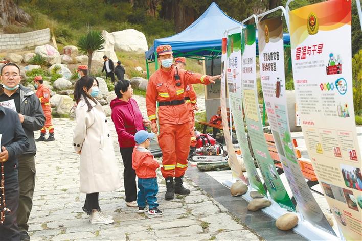 圖為指戰(zhàn)員向游客講解森林防火知識。西藏日報記者 張猛 攝