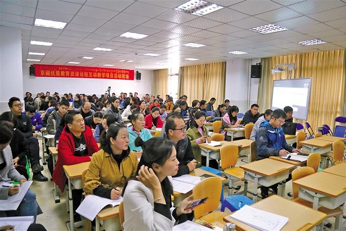 圖為在拉薩北京實驗中學舉辦的與北京某優(yōu)質學校網(wǎng)絡遠程教研活動現(xiàn)場。王莉 攝