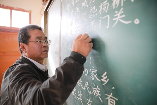 曾經(jīng)教育經(jīng)費有限,他自己做教具;當(dāng)?shù)販羡挚v橫,舊校舍在洼地上,他將家里最好的兩畝多平地拿出來建了新校舍;孩子們長身體需要營養(yǎng),他從自己工資里拿錢加餐。而他的眼睛積勞成疾,由于當(dāng)?shù)蒯t(yī)療條件有限,他又不愿因為看病耽誤課程進(jìn)度,就用紗布蒙著眼睛堅持教學(xué)。久而久之,小毛病拖成了大問題,也落下了高度近視、不能見強光的病根。