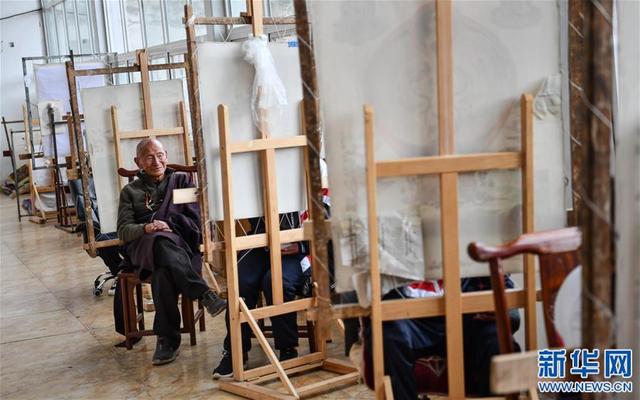 嘎瑪?shù)吕绽先嗽谖鞑夭际锌ㄈ魠^(qū)嘎瑪鄉(xiāng)的民族手工藝培訓(xùn)基地里教學(xué)員們畫唐卡(10月3日攝)。新華社記者 晉美多吉 攝