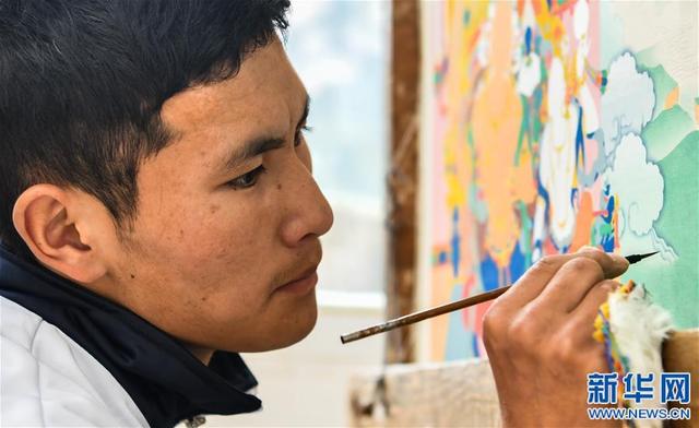 在西藏昌都市卡若區(qū)嘎瑪鄉(xiāng)的民族手工藝培訓(xùn)基地,學(xué)員在學(xué)習畫唐卡(10月3日攝)。新華社記者 晉美多吉 攝
