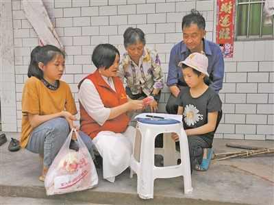 2020年6月21日,張彥杰(左二)為明揚鎮(zhèn)父母雙殘的孩子黎俊秀及妹妹送去2000元助學金。本版照片除署名外均由受訪者提供