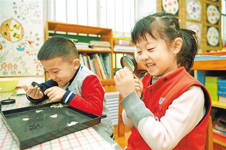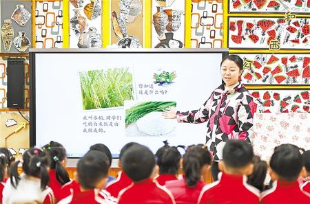 課堂上孩子們通過(guò)觀察、觸摸、分類,來(lái)了解谷物。