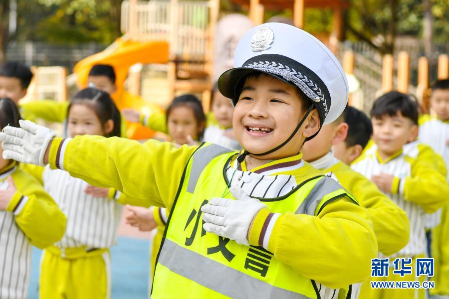 11月30日,浙江省湖州市長(zhǎng)興縣龍山幼兒園的孩子們?cè)趯W(xué)習(xí)交通指揮手勢(shì)。在12月2日“全國(guó)交通安全日”即將到來(lái)之際,各地舉行了形式多樣的教育活動(dòng),讓孩子們?cè)谌の痘顒?dòng)中樹(shù)立交通安全法治意識(shí),養(yǎng)成文明出行好習(xí)慣。新華社發(fā)(譚云俸 攝)