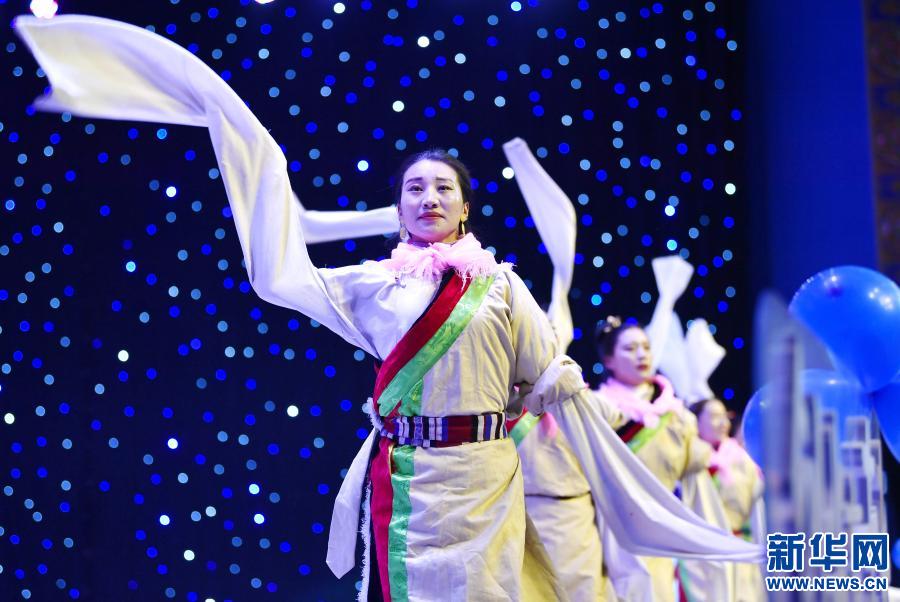 演員在西藏那曲第二屆高校畢業(yè)生創(chuàng)業(yè)大賽決賽現場表演(11月30日攝)。新華社記者 張汝鋒 攝