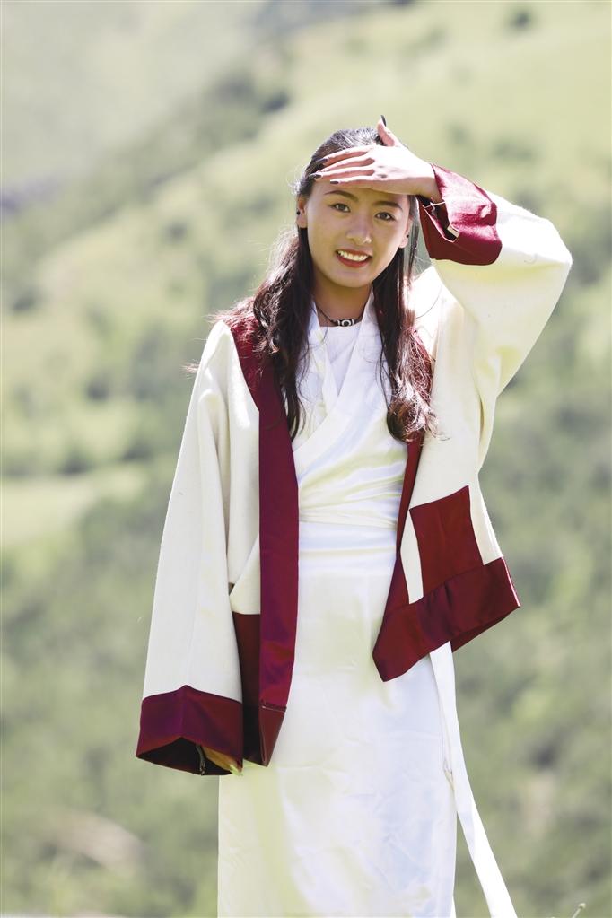 為此,覺美極其講究衣服顏色及邊花的選擇和應(yīng)用,不管用什么料子都要最大限度發(fā)揮“藝卓紫媽”服飾特色,最終形成了肥大、長袖、寬腰、右襟的品牌特點(diǎn),獨(dú)創(chuàng)無需量體裁衣的直線服裝。說起品牌打造和藝術(shù)走秀的關(guān)系,覺美表示:“我自己平常特別喜歡穿本民族服裝,也參加過很多走秀活動,希望可以將藏裝推向世界。以前那曲沒有服飾走秀,所以我想讓更多的人穿上傳統(tǒng)服飾,讓這種獨(dú)特的美被更多人看到?!?/p>