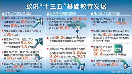 截至2019年底,全國(guó)30.9萬(wàn)所義務(wù)教育學(xué)校(含教學(xué)點(diǎn))辦學(xué)條件達(dá)到基本要求,占義務(wù)教育學(xué)??倲?shù)的99.8%;全國(guó)95.3%的縣通過(guò)縣域義務(wù)教育基本均衡發(fā)展國(guó)家督導(dǎo)評(píng)估驗(yàn)收。[詳細(xì)] -