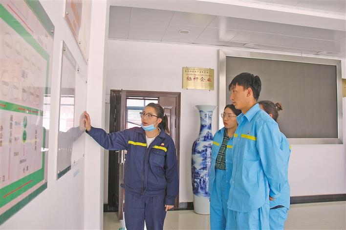 圖為鐵路接卸油庫(kù)青年員工索娜曲珍為新入職員工講解油庫(kù)工藝流程。李一蕾 唐啟勝 攝