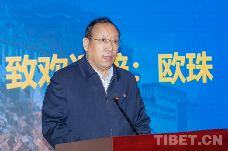 圖為西藏民族大學黨委書記歐珠致歡迎辭