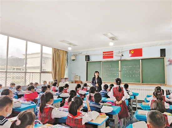 圖為拉薩市第一小學(xué)四年級(jí)(8)班班主任在為同學(xué)們開(kāi)展開(kāi)學(xué)第一課主題班會(huì)。 拉薩融媒記者 余洋洋攝