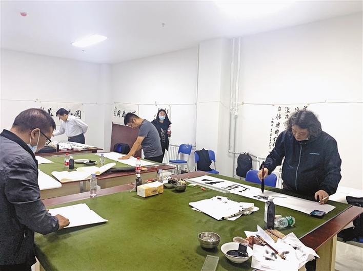 圖為北京和拉薩兩地書法家在拉薩師范高等專科學校開展書法筆會交流。 記者 裴聰 攝