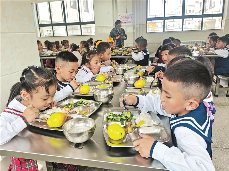 “學(xué)校沒有提供午餐前,中午特別忙。我是在路上趕,母親在家里忙,把小孩接回家吃飯,吃完后馬上又要趕回學(xué)校?,F(xiàn)在學(xué)校提供午餐,實(shí)在是太方便了?!崩_市第一小學(xué)四年級(jí)學(xué)生家長(zhǎng)央金說(shuō)道。