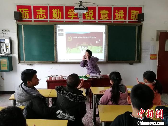 圖為西安局集團公司職工孟露深入楊莊小學(xué),為當?shù)貙W(xué)生開展支教工作?!钤砾i 攝