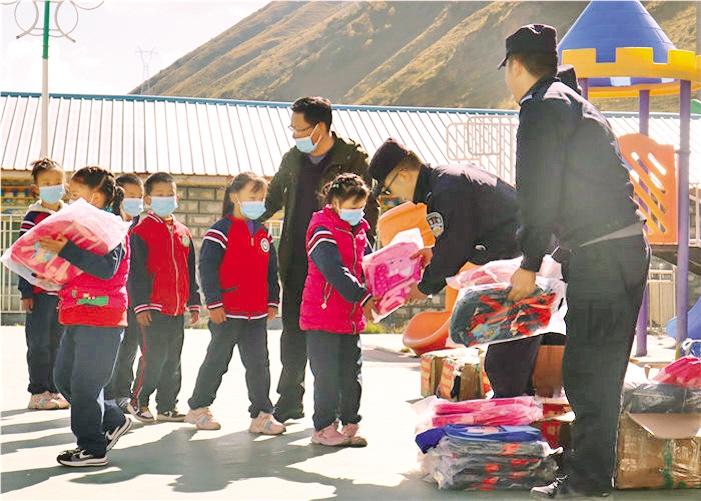日喀則康布邊境派出所給康布鄉(xiāng)小學(xué)學(xué)生發(fā)放捐贈物資