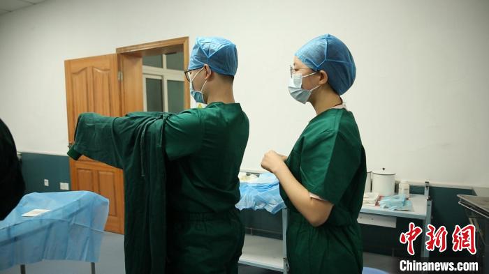 圖為學(xué)生在練習(xí)穿脫手術(shù)衣。(資料圖) 甘肅中醫(yī)藥大學(xué)第一臨床醫(yī)學(xué)院供圖
