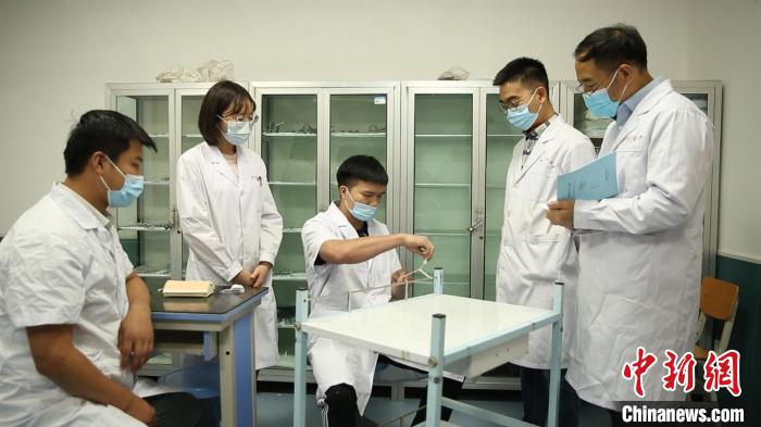圖為學(xué)生在進(jìn)行外科打結(jié)考核。(資料圖) 甘肅中醫(yī)藥大學(xué)第一臨床醫(yī)學(xué)院供圖
