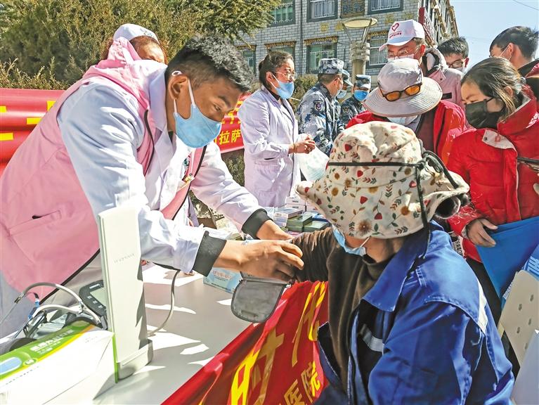 當(dāng)日,西藏拉薩警備區(qū)組織200余名官兵通過(guò)以工代勤的方式,深入大昭寺、八廓街道等地開(kāi)展“學(xué)習(xí)雷鋒精神、喜迎黨的二十大”主題活動(dòng)?;顒?dòng)主要包括義務(wù)巡診、發(fā)放藥品、清潔衛(wèi)生、消毒、理發(fā)等十余項(xiàng)。