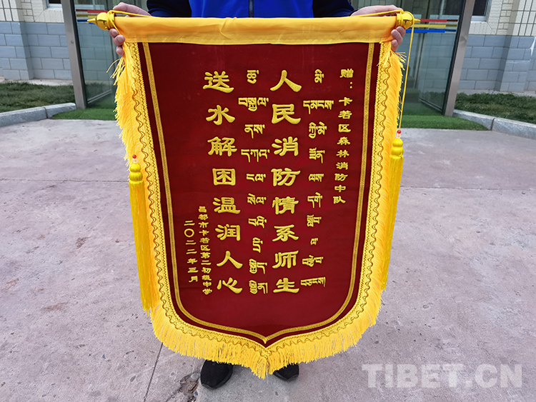 中國西藏網(wǎng)訊 一面錦旗,凝聚著群眾對消防隊(duì)伍誠摯的謝意和真摯的情感。4月1日,西藏自治區(qū)昌都市卡若區(qū)森林消防中隊(duì)迎來了一批“特殊的客人”(昌都市第二初級中學(xué)的師生代表),他們將一面繡有“人民消防情系師生 送水解困溫潤人心”的錦旗贈(zèng)送給中隊(duì)全體人員,向中隊(duì)全體消防救援人員表示衷心感謝。