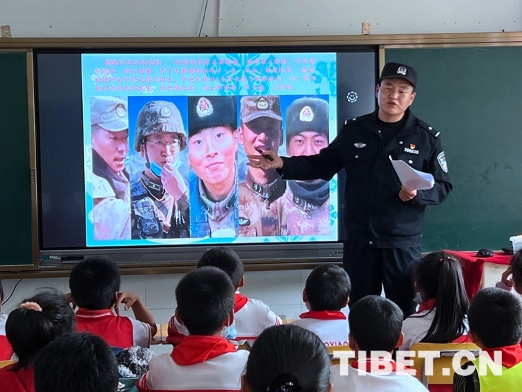 中國西藏網(wǎng)訊 “同學們,大家知道照片上這位英雄是誰嗎?”伴隨著民警周升展的提問聲,孩子們紛紛舉起手回答出了這位英雄——祁團長?!澳銈冋媛斆?,今天叔叔給大家講一講新時代衛(wèi)國戍邊英雄祁發(fā)寶團長的故事……”