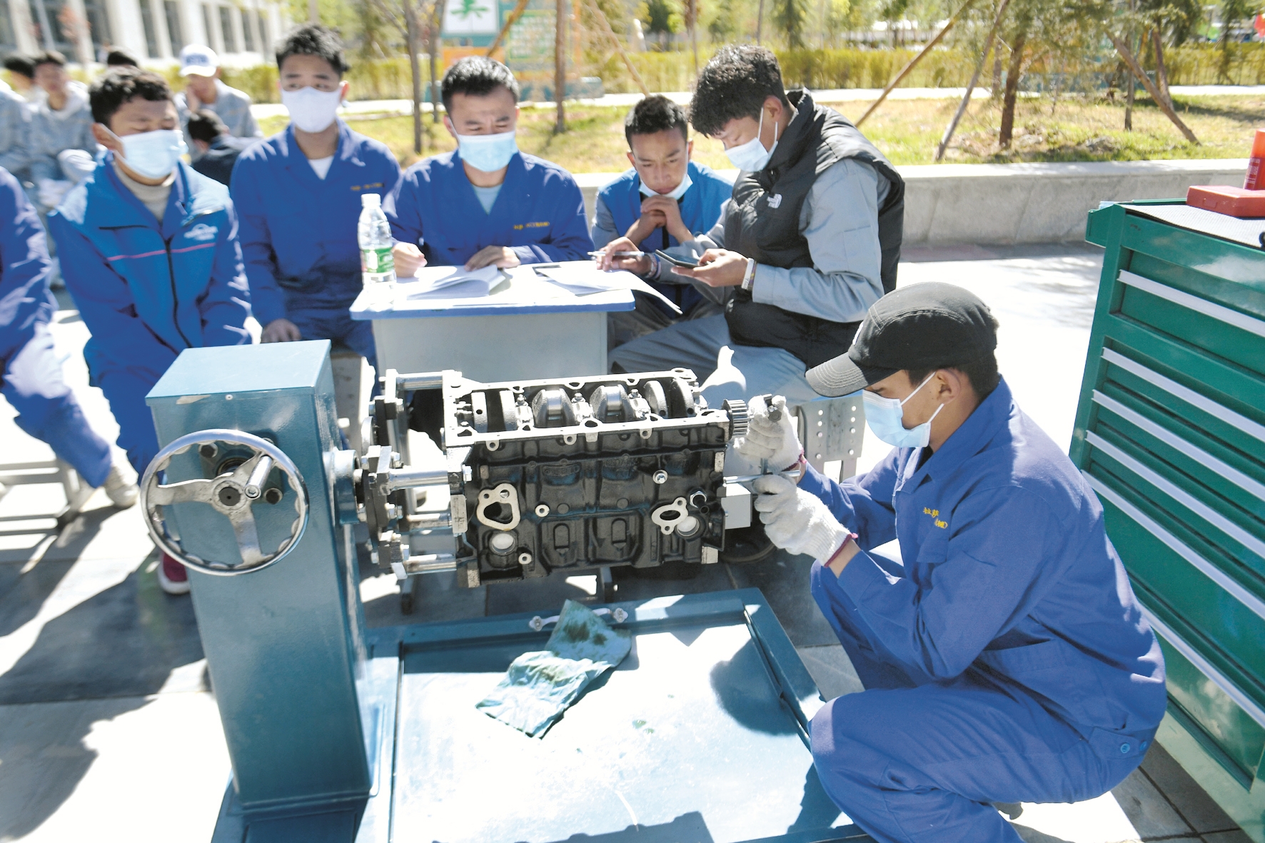 圖為拉薩市一職學生正在展示專業(yè)技能。 拉薩融媒記者 巴桑次仁攝