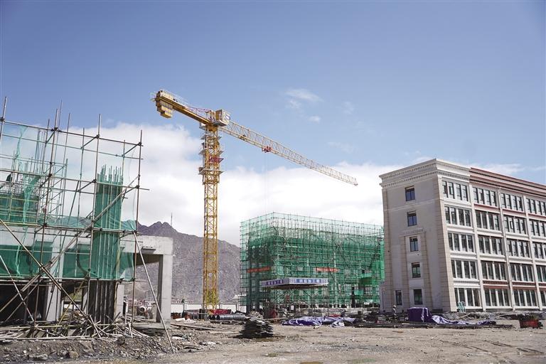 16日,記者在施工現(xiàn)場(chǎng)看到,拉薩市實(shí)驗(yàn)小學(xué)教育城分校北面,很大一塊空地被擋板圍了起來(lái),大型起吊機(jī)正在擋板內(nèi)來(lái)回運(yùn)轉(zhuǎn)。其中,有三棟樓已拔地而起,從外面看主體已經(jīng)竣工。