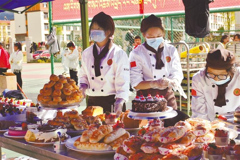 中西點班的學(xué)生展示自己制作的糕點。記者 謝筱純 王珊 張猛 攝