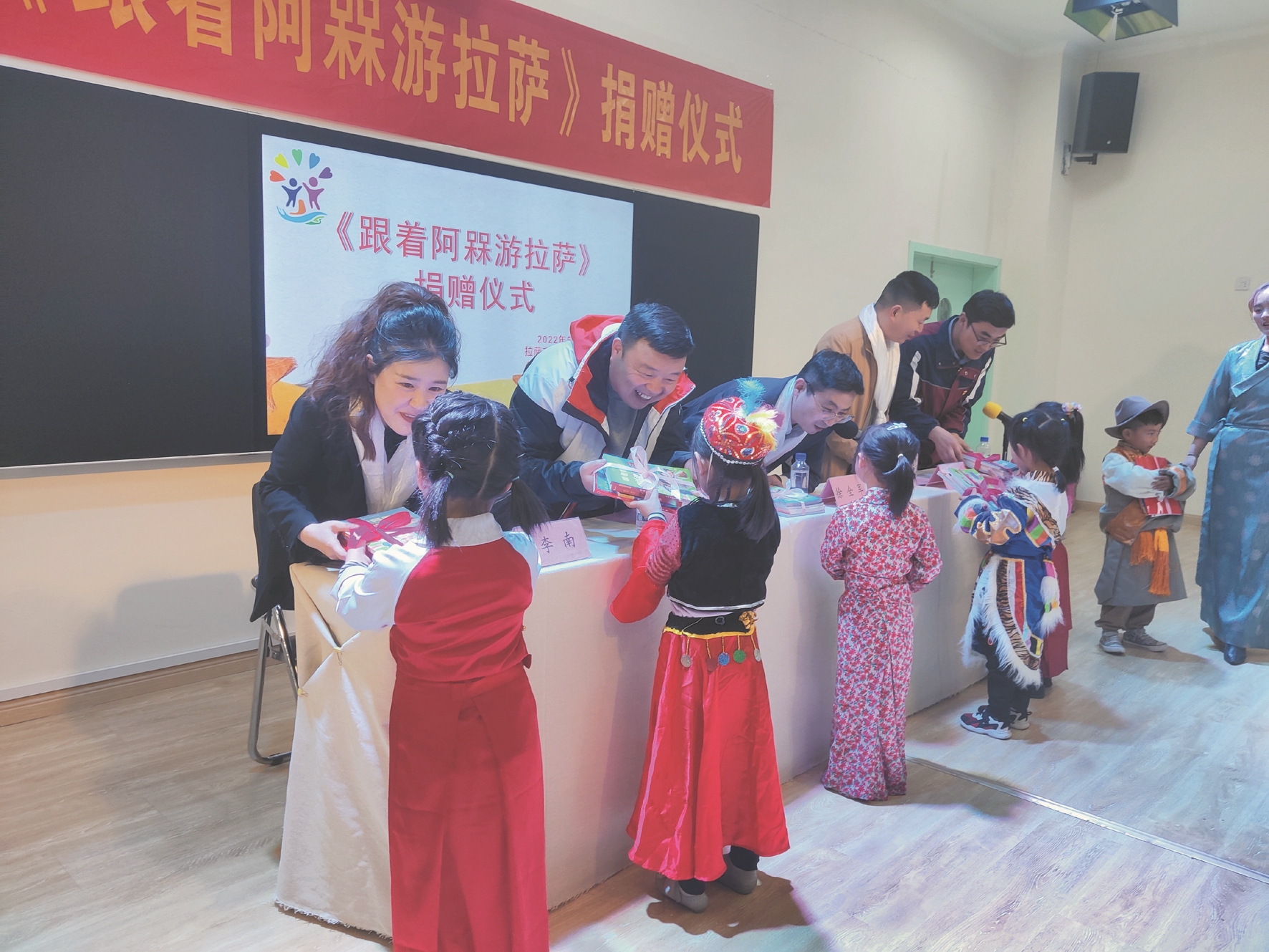 圖為捐贈(zèng)儀式上,幼兒代表上臺(tái)領(lǐng)取繪本。 拉薩融媒記者 余洋洋攝