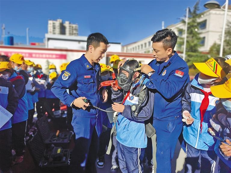 圖為拉薩市堆龍德慶區(qū)姜昆黃小勇希望小學(xué)少先隊開展“走進消防救援隊 零距離體驗消防”活動。記者 張宇 通訊員 蘭佳琪 攝