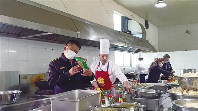 執(zhí)法人員檢查學(xué)校食堂。 文/圖 記者 央金卓瑪