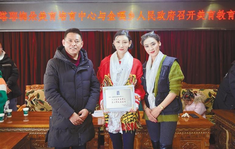 洛桑卓瑪(中)帶領(lǐng)團(tuán)隊(duì)前往日喀則市江孜縣金嘎鄉(xiāng)開展美育公益活動(dòng)。