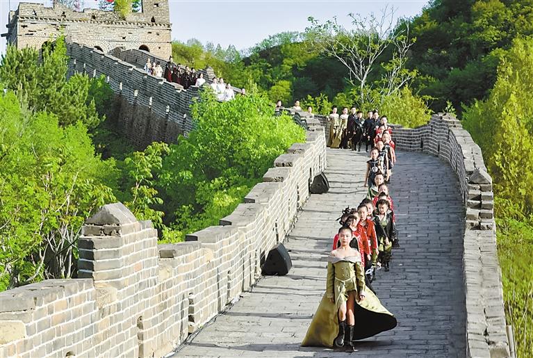 塔耶梅朵美育培養(yǎng)中心的學(xué)員們?cè)陂L(zhǎng)城上走秀。
