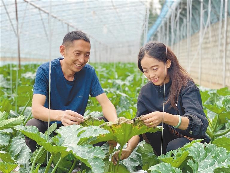蘇州市援藏工作組通過智力支持與技術支援,助力林周縣構建起完善的農(nóng)產(chǎn)品監(jiān)管體系。圖為在溫室大棚內(nèi)工作人員卓瑪(右)在學習種植知識。