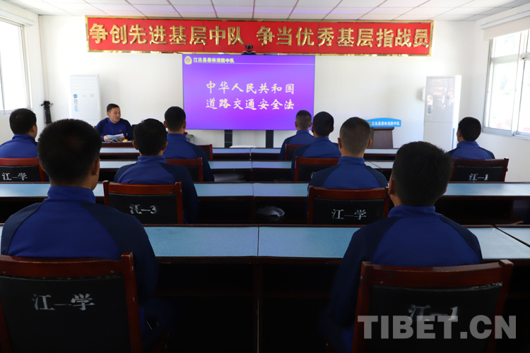 圖為昌都市森林消防支隊江達縣中隊指戰(zhàn)員學(xué)習(xí)《中華人民共和國道路交通安全法》